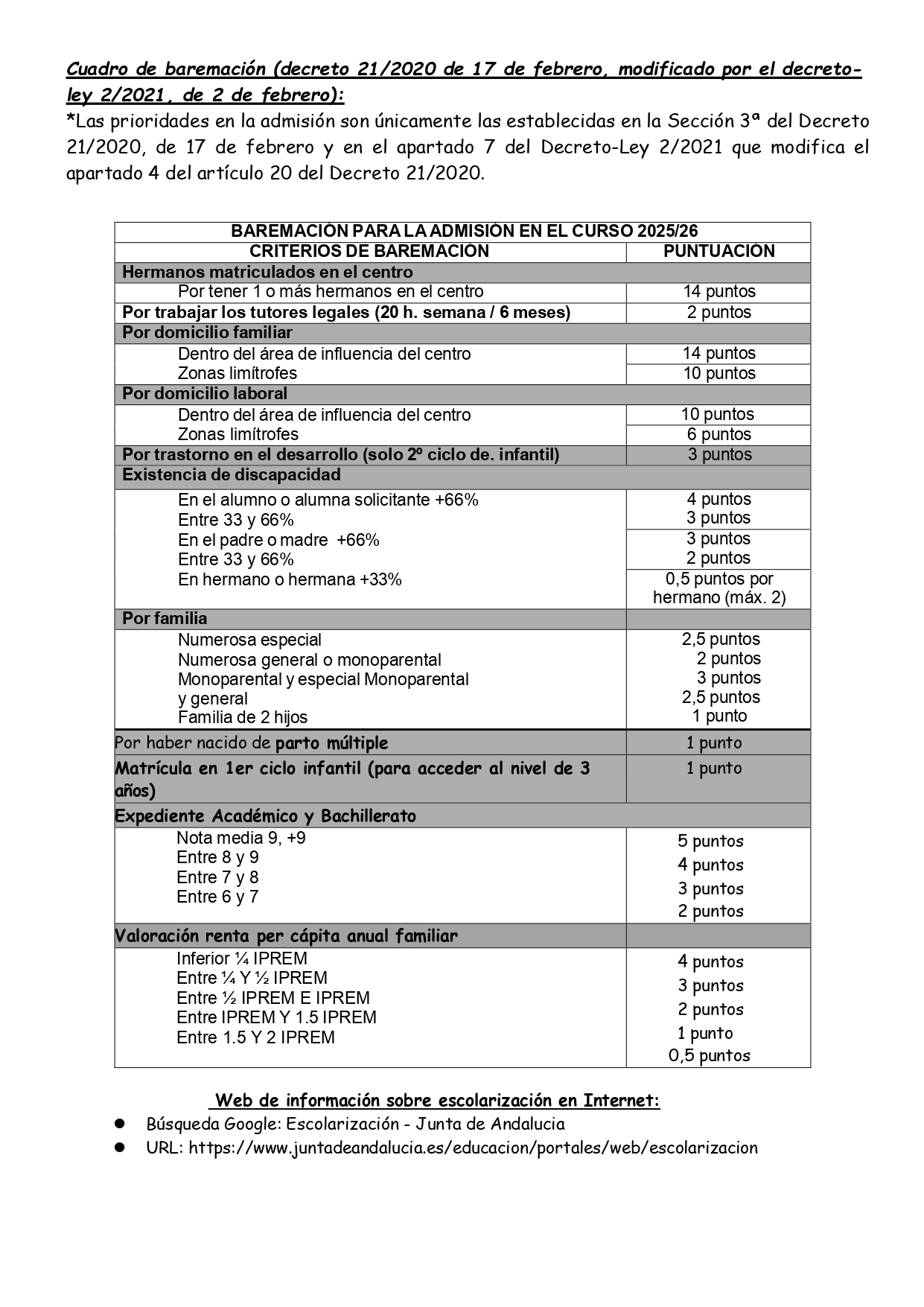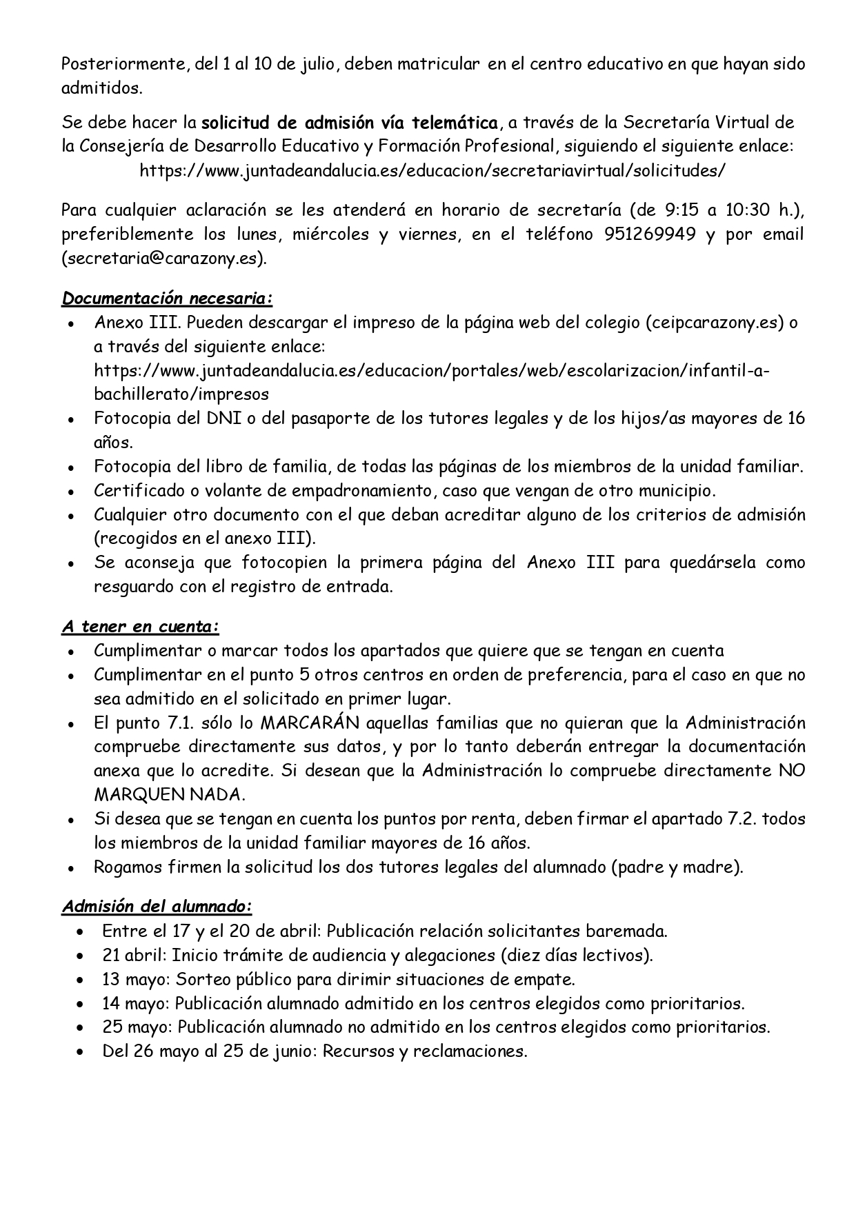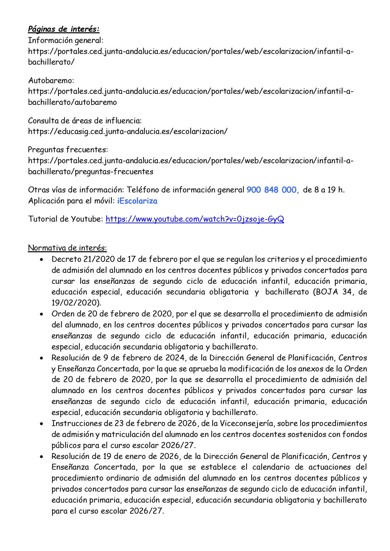• Admisión 2026/27