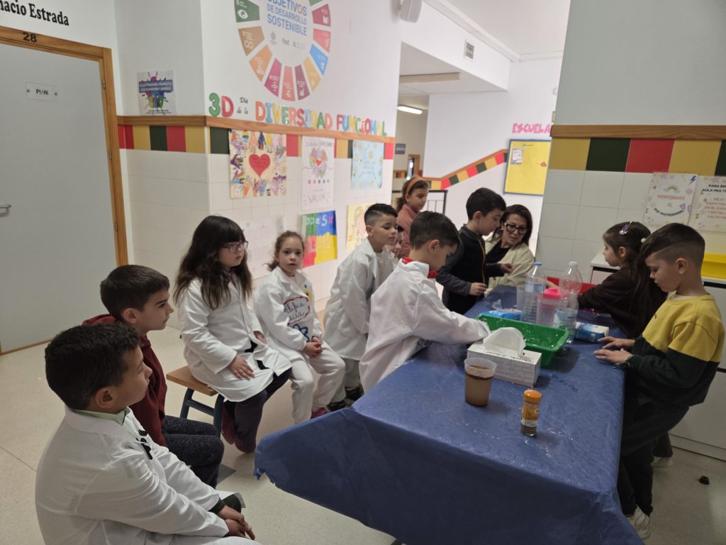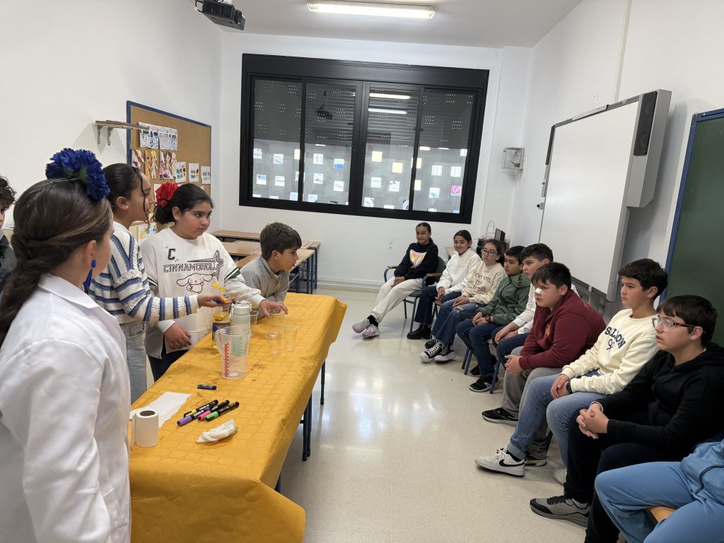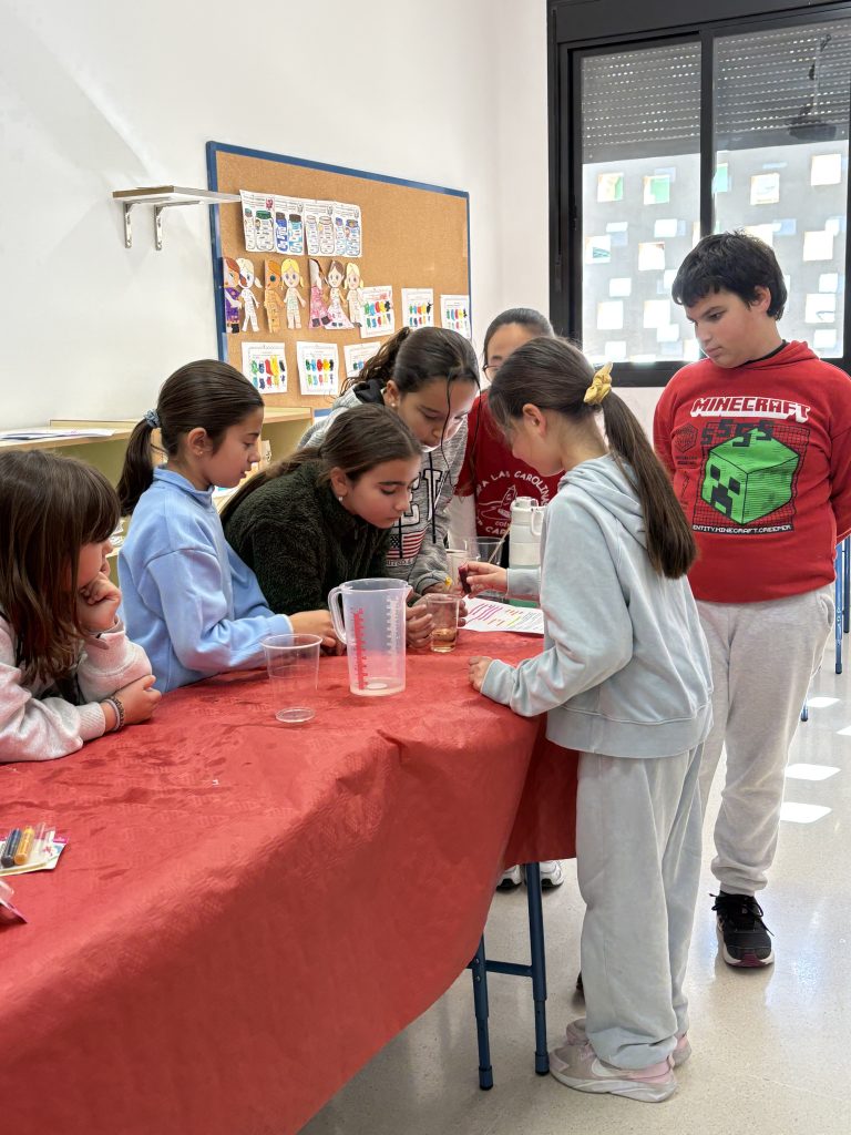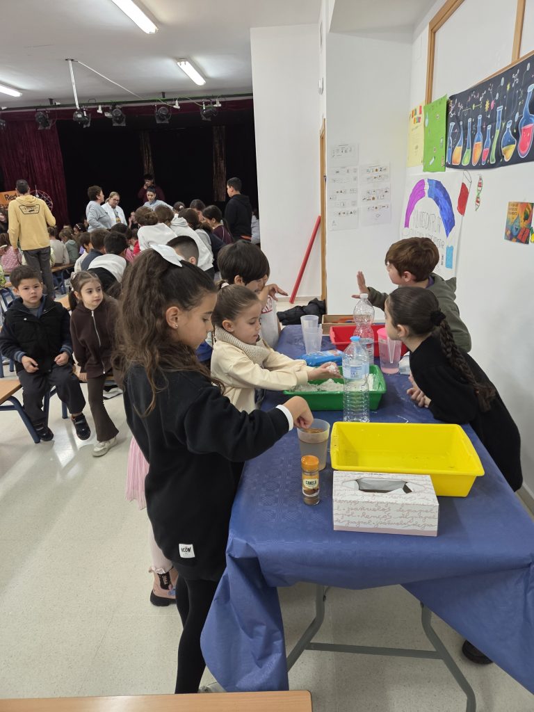 Convertimos el centro en un auténtico laboratorio vivo dividido en seis estaciones temáticas. Por grupos, el alumnado fue rotando para descubrir diferentes fenómenos físicos y químicos: