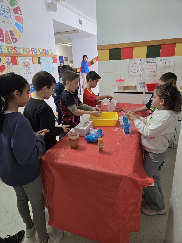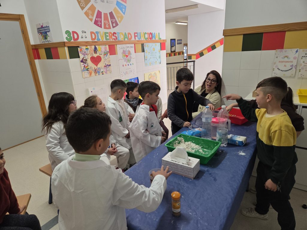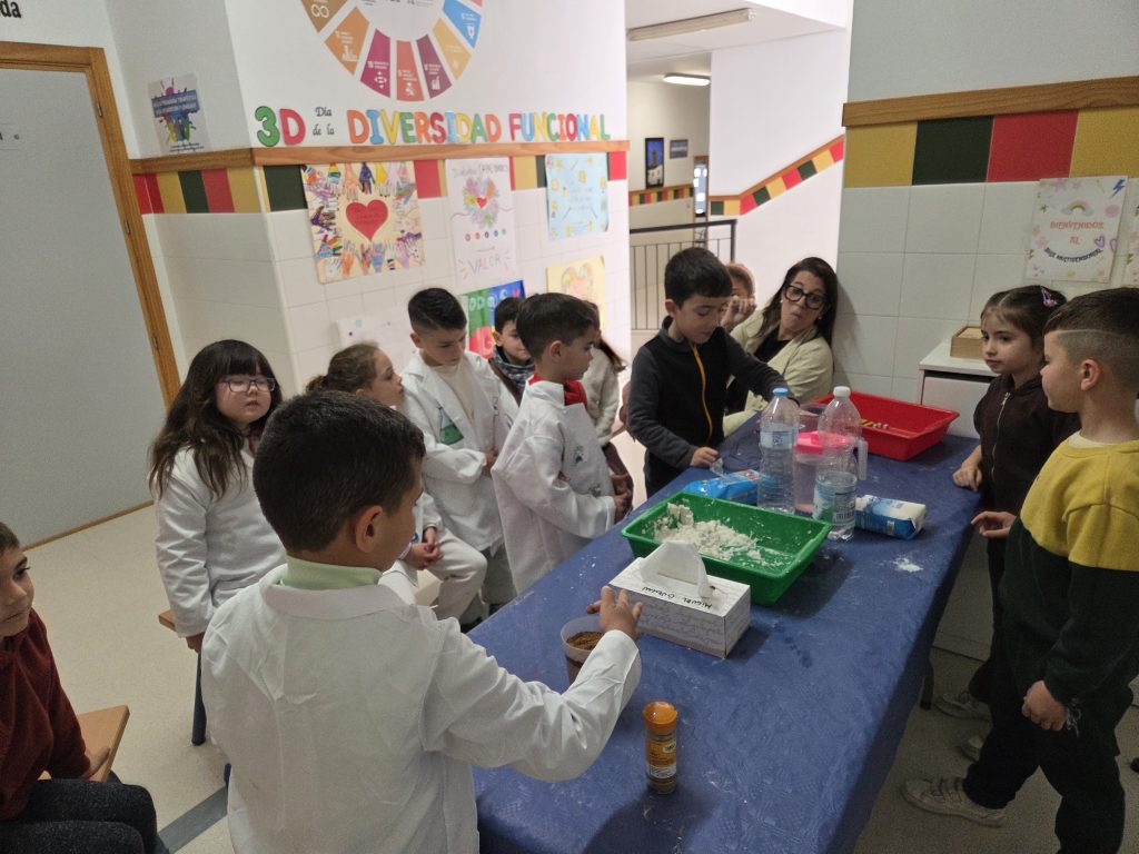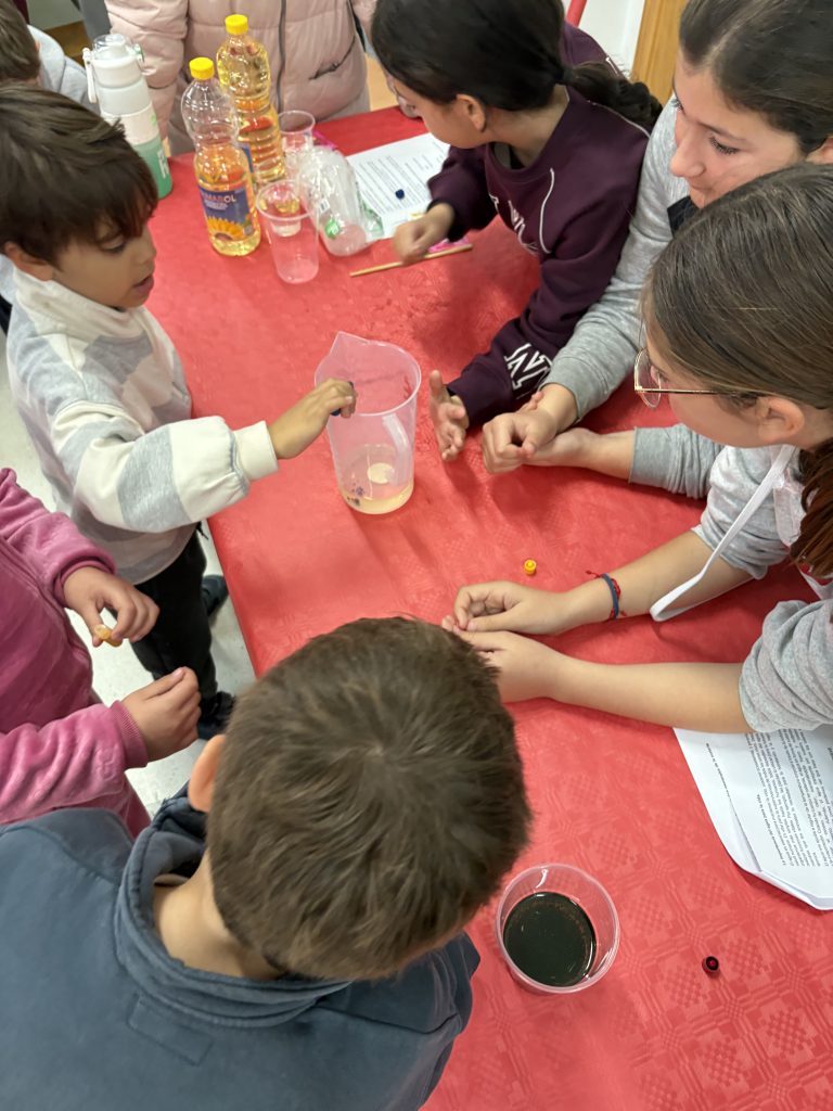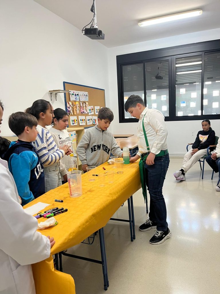 Convertimos el centro en un auténtico laboratorio vivo dividido en seis estaciones temáticas. Por grupos, el alumnado fue rotando para descubrir diferentes fenómenos físicos y químicos: