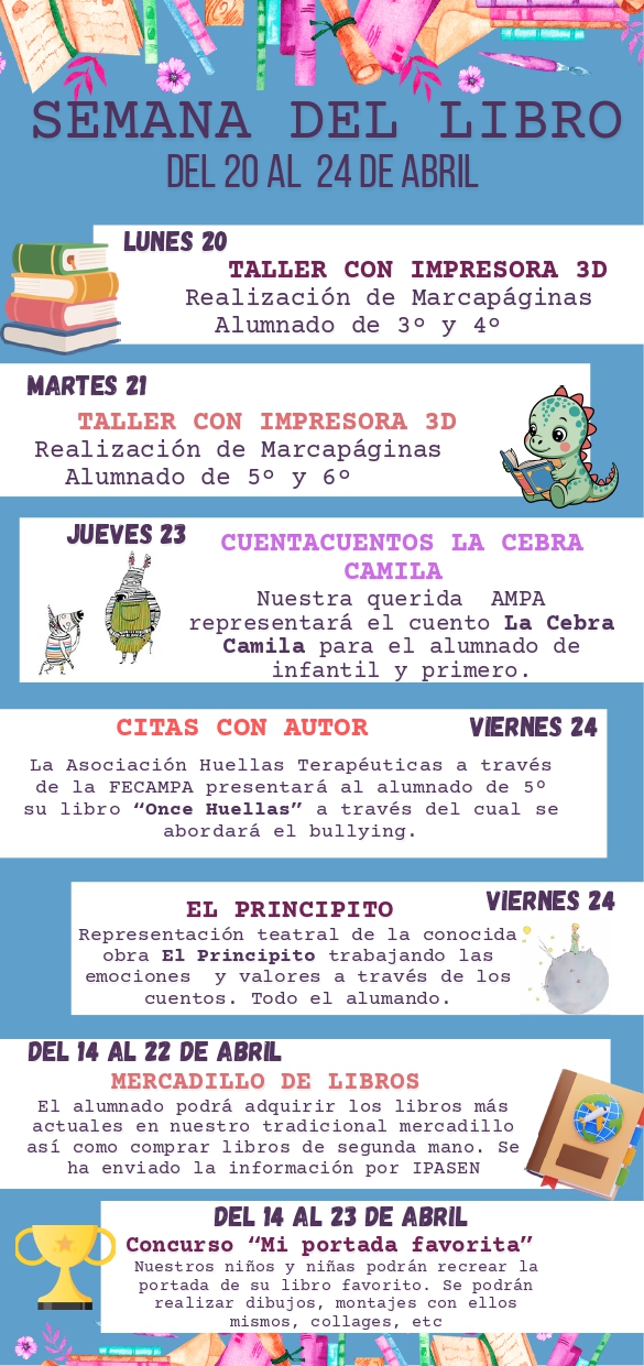 ¡Hola, familias! Ya se siente en el aire ese olor a libro nuevo y a historias por descubrir. Del 20 al 24 de abril, nuestra biblioteca escolar se pone de gala para celebrar la «Semana del Libro», y este año… ¡viene cargada de sorpresas!
